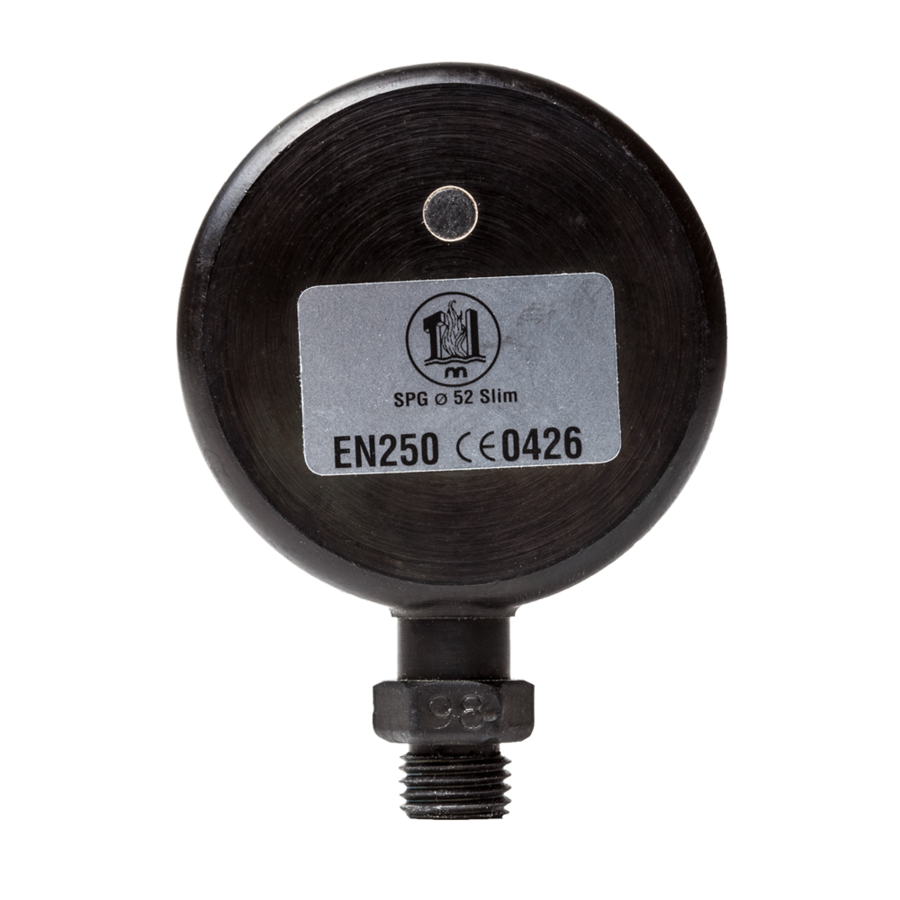 High-quality brass pressure gauge, suitable especially for main tanks and stages.Body: black chromedStainless steel ring: PVD treatmentPVD is 300 times harder than chromeThe chromed body is much more durable than nickel treatmentSynoptic dial scale up to 300 bar, white dial.Comes with swivel and with viton o-rings.